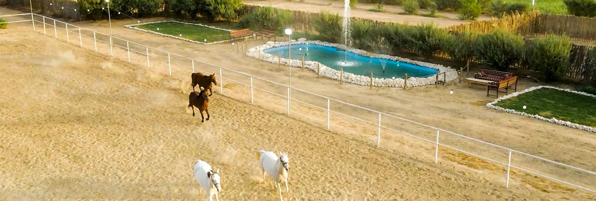 Enjoy the world of equestrianism, with the variety of options we offer. Whether you are looking to reserve horses for riding at the track, or for a tour around the farm in the meadows of Aljeyad Farm, or participating in professional training courses, or watching equestrian shows at the horse track, in addition to a kids’ track for your children and another for young people, and a special equestrian center for women, our facilities provide a comprehensive and unique experience. Get ready for an unforgettable journey of fun and skill-building in the heart of Aljeyad Farm, with a spacious horse track adding a chance of excitement to your horseback adventure.